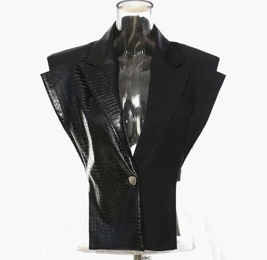 Spliced Crocodile Leather Style V Neck. Trending Streetwear Style